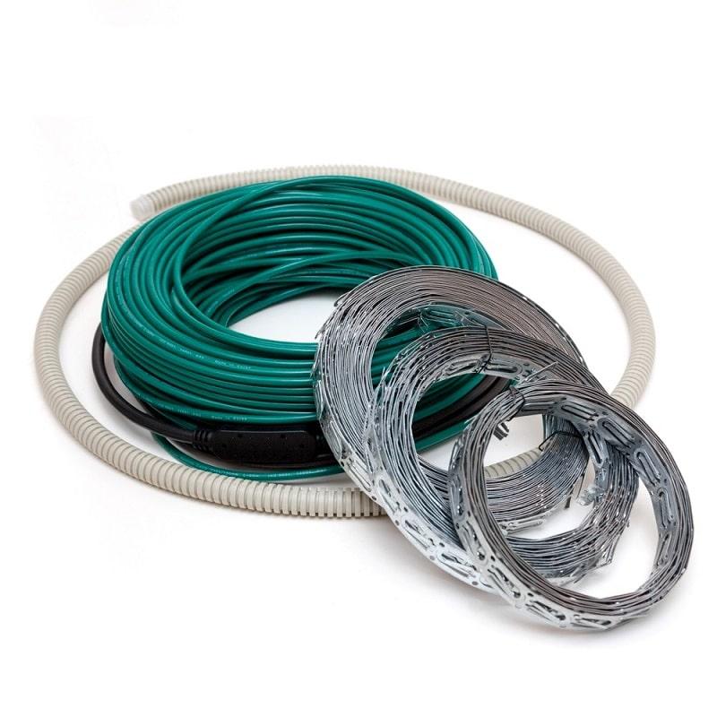 | Состав комплекта: | Греющий кабель для теплого пола 120 м, коробка, инструкция по установке, монтажная лента, гофротрубка для датчика температуры пола. |